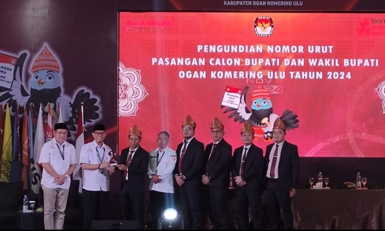 Baturaja, beritaokuterkini.com – Pasangan calon Bupati Ogan Komering Ulu (OKU) H Teddy Meilwansyah dan Calon Wakil Bupati OKU H Marjito Bachri mendapat nomor urut 2 (dua) dalam pengundian nomor urut Paslon Bupati dan Wakil Bupati OKU yabg digelar KPU OKU di Ballroom BIL Hotel Baturaja pada Senin (23/9/2024).