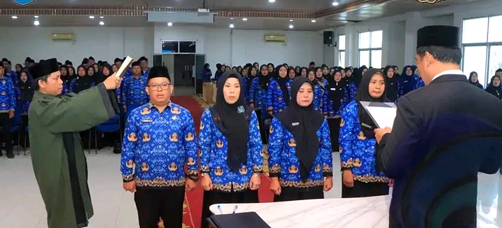Prosesi pelantikan ditandai dengan pengambilan sumpah jabatan yang diikuti para pejabat fungsional, serta disaksikan oleh jajaran pejabat di lingkungan Pemkab OKU Selatan dan tamu undangan yang hadir.