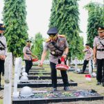 Maski Hujan Turun Lebat, Kapolres OKU Tetap Pimpin Upacara Ziarah Ke Makam Pahlawan