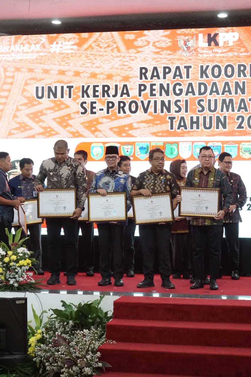 Penghargaan itu diserahkan oleh Wakil Gubernur Sumsel Cik Ujang kepada Bupati OKU H Teddy Meilwansyah SSTP MM MPd dalam kegiatan Rapat Koordinasi UKPBJ se Provinsi SUmsel tahun 2025 di Ballroom Hotel Swarna Dwipa Palembang pada Kamis (21/8/2025).