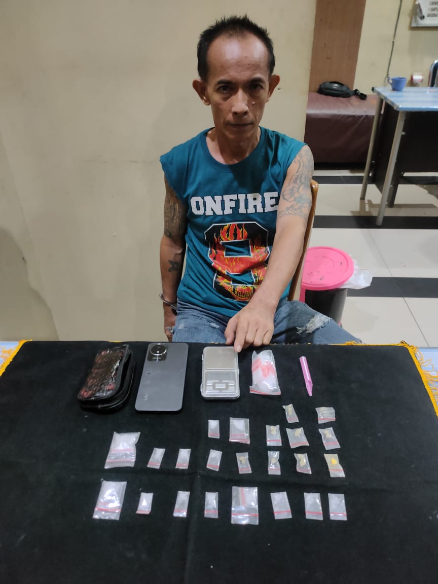 “Pada saat dilakukan penggeledahan terhadap pelaku yang disaksikan Kepala desa setempat, Polisi berhasil menemukan barang bukti berupa satu buah dompet warna coklat yang berisikan 14 (empat belas) bungkus plastik klip bening masing-masing didalamnya berisikan kristal – kristal bening diduga narkotika jenis sabu dengan berat bruto 7,45 (tujuh koma empat lima) gram,” jelas Kapolres OKU AKBP Imam Zamroni melalui Kasi Humas Polres OKU IPTU Ibnu Holdon. Selasa,(25/06/2024).