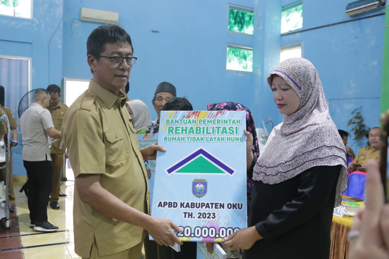 Program bantuan Rehabilitasi RTLH diserahkan secara simbolis oleh Asisten II Setda OKU H Hasan HD didamping Kepala Dinas PU Perkim Ir H Ulia Mahdi MM dalam kegiatan Musrenbang Kecamatan Baturaja Timur, Selasa (28/2/2023) sore kemarin. “Saat ini masih proses pembangunan,” kata Kepala Dinas PU Perkim Ir H Ulia Mahdi MM saat dibincangi awak media.
